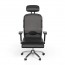 Uredska fotelja modernog dizajna s tapeciranim sjedalom u crnoj eko koži ili tkanini te naslonom u crnoj mreži. Rukonasloni su podesivi po visini. Peterokraka baza kromirana s kotačima za tvrde podove. Naslon za glavu moguće je podešavati.